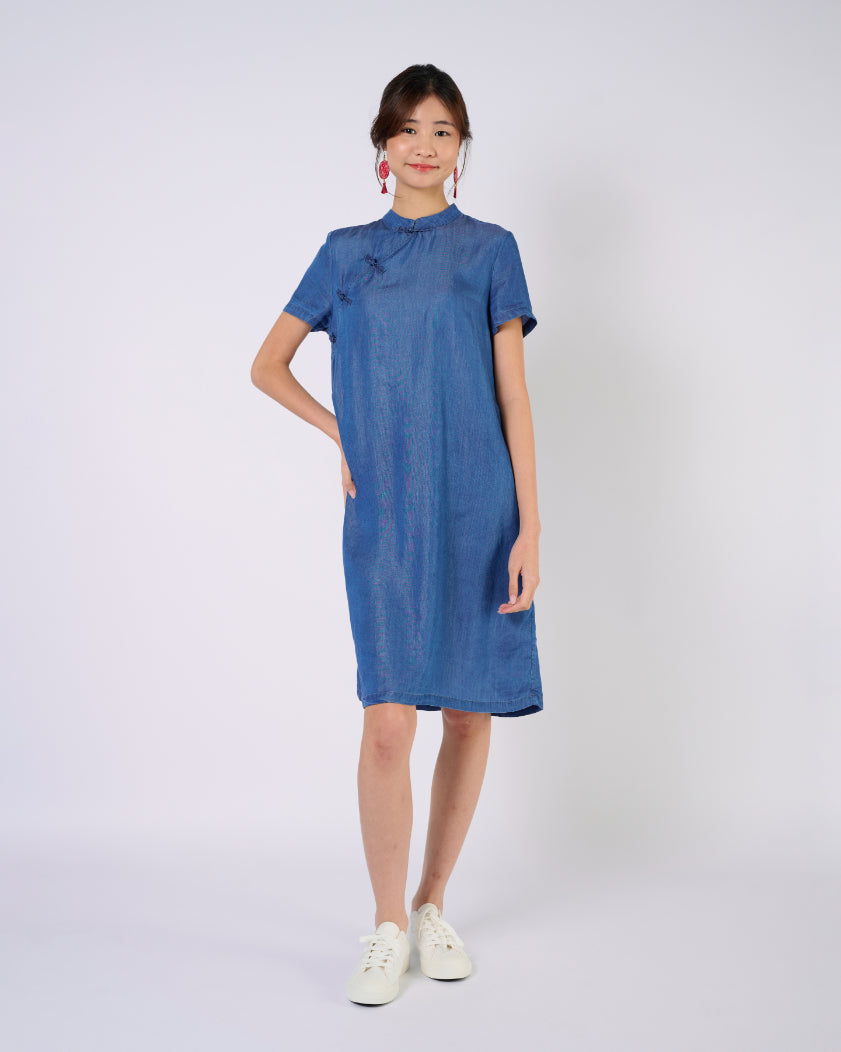 Cheongsam Midi Dress in Indigo Blue Jeans